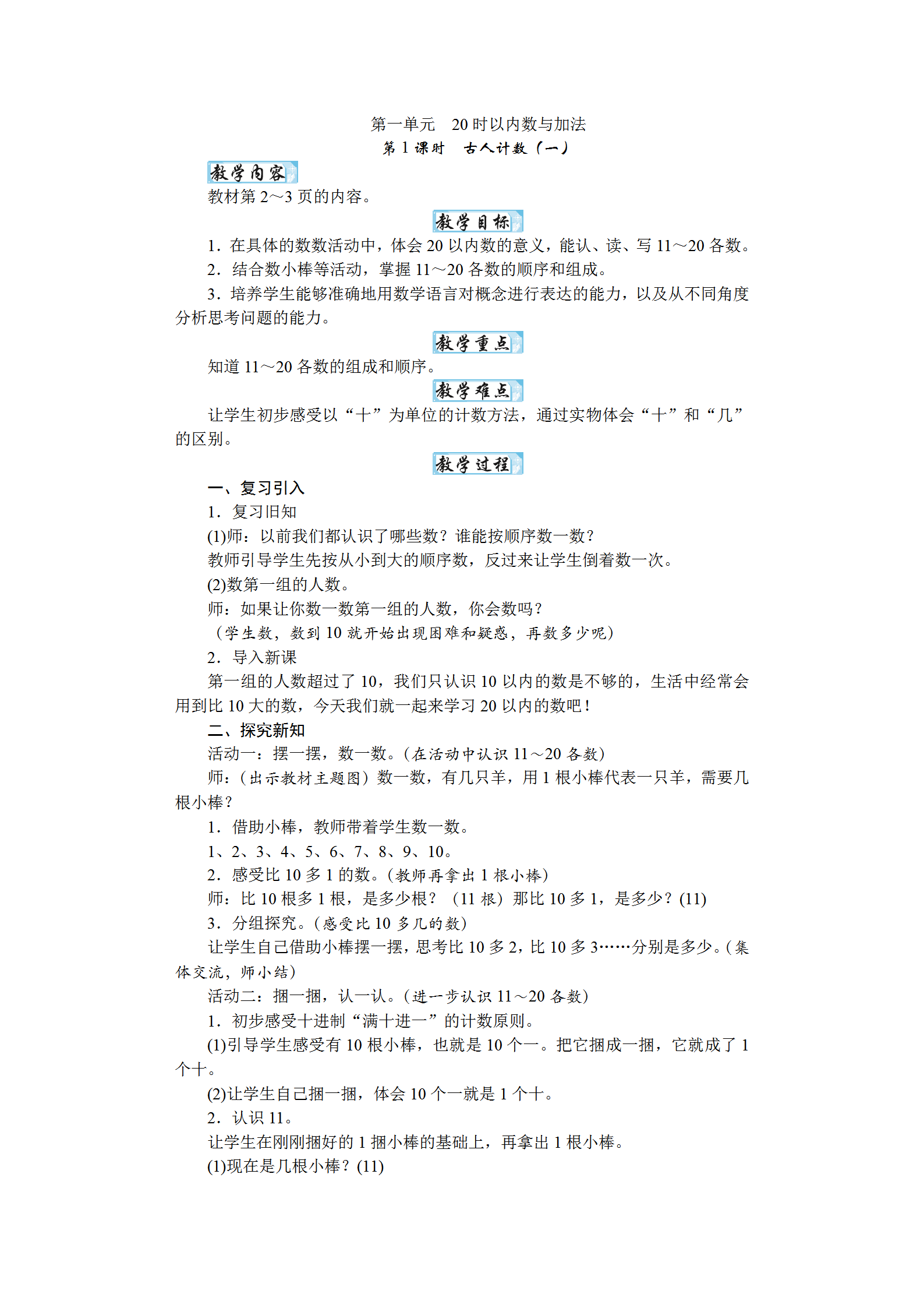 2026春北师版数学一年级下册配套教案 纯净版 word版 可编辑修改 可直接下载使用