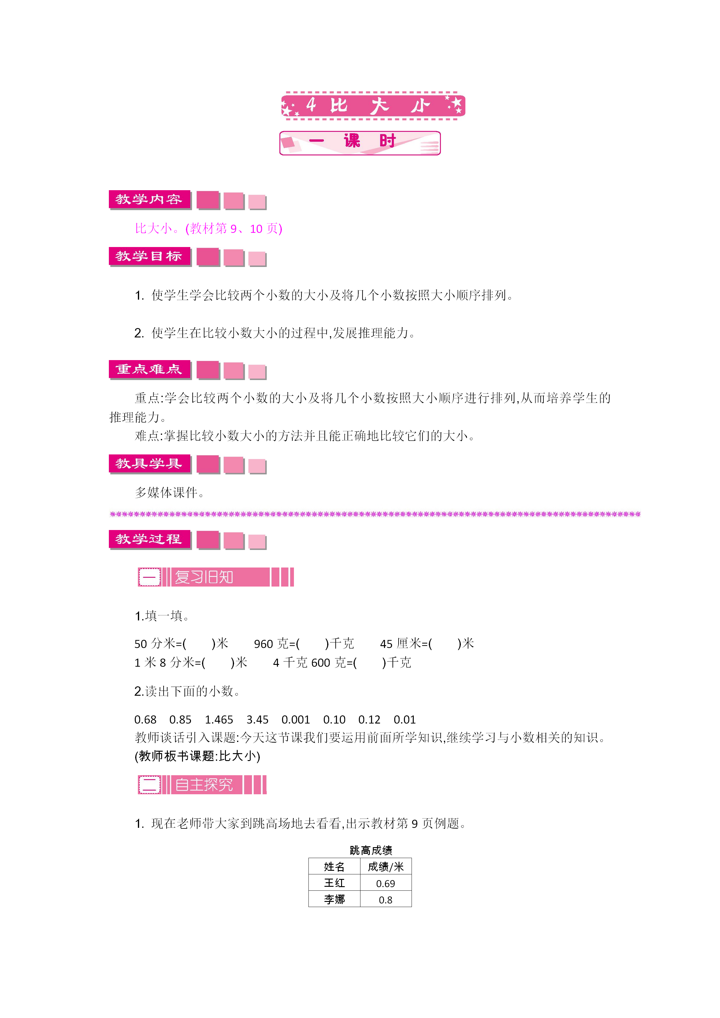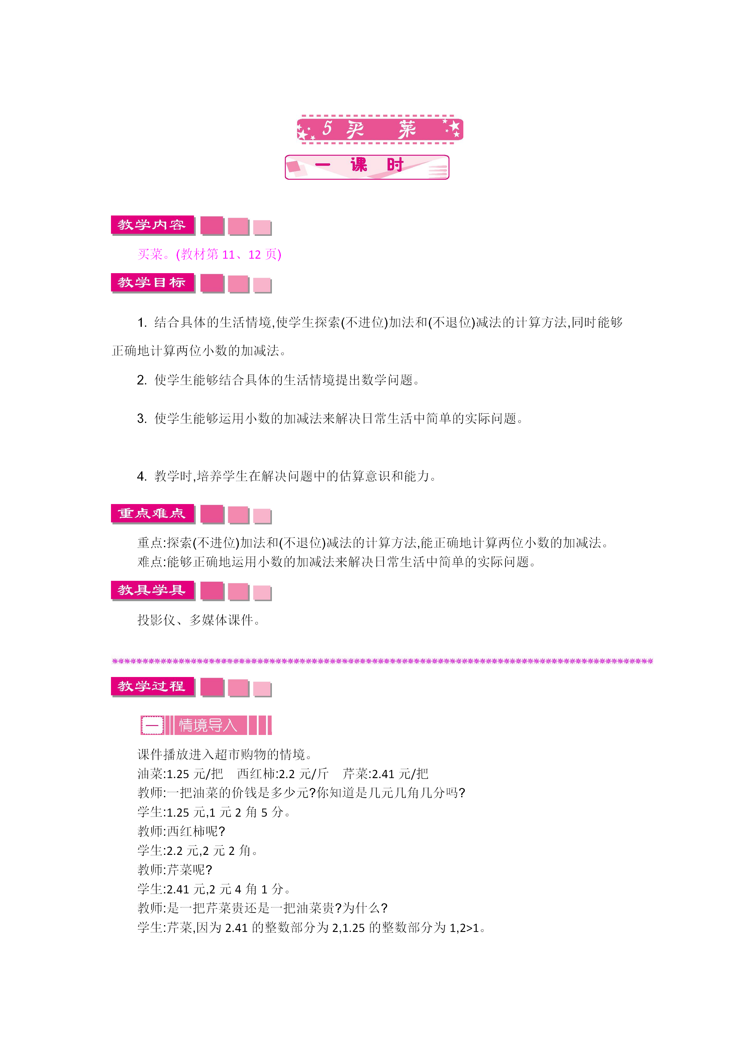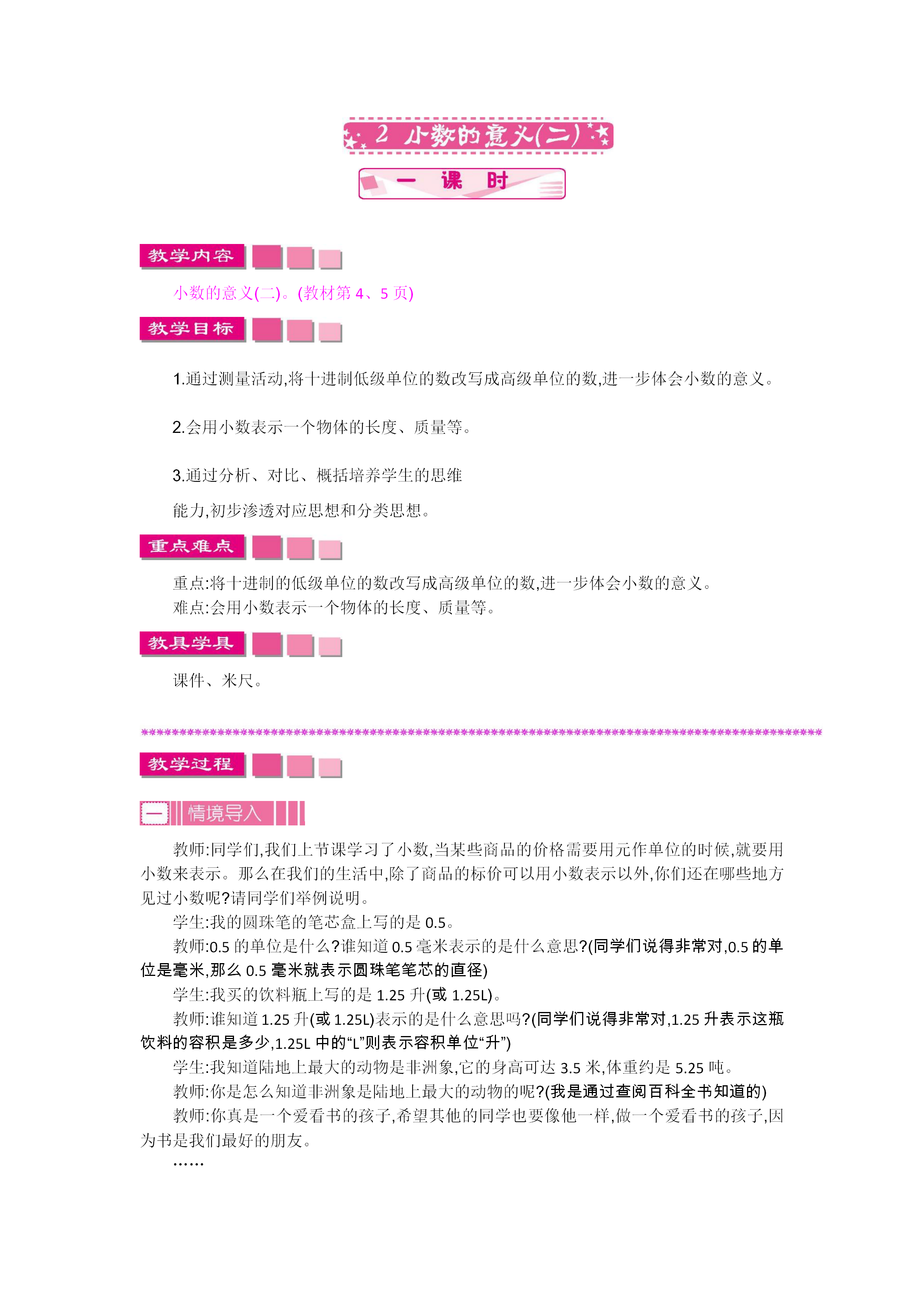 26春北师大版数学四年级下册word版教案+学案