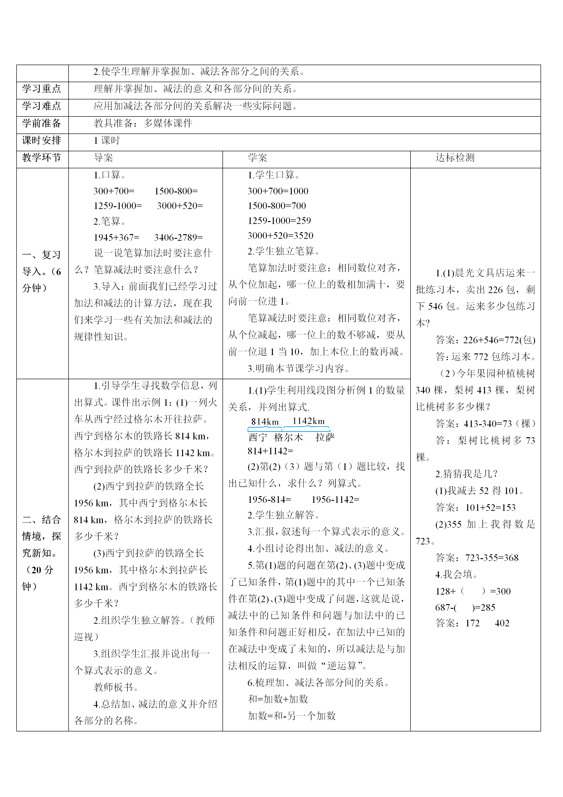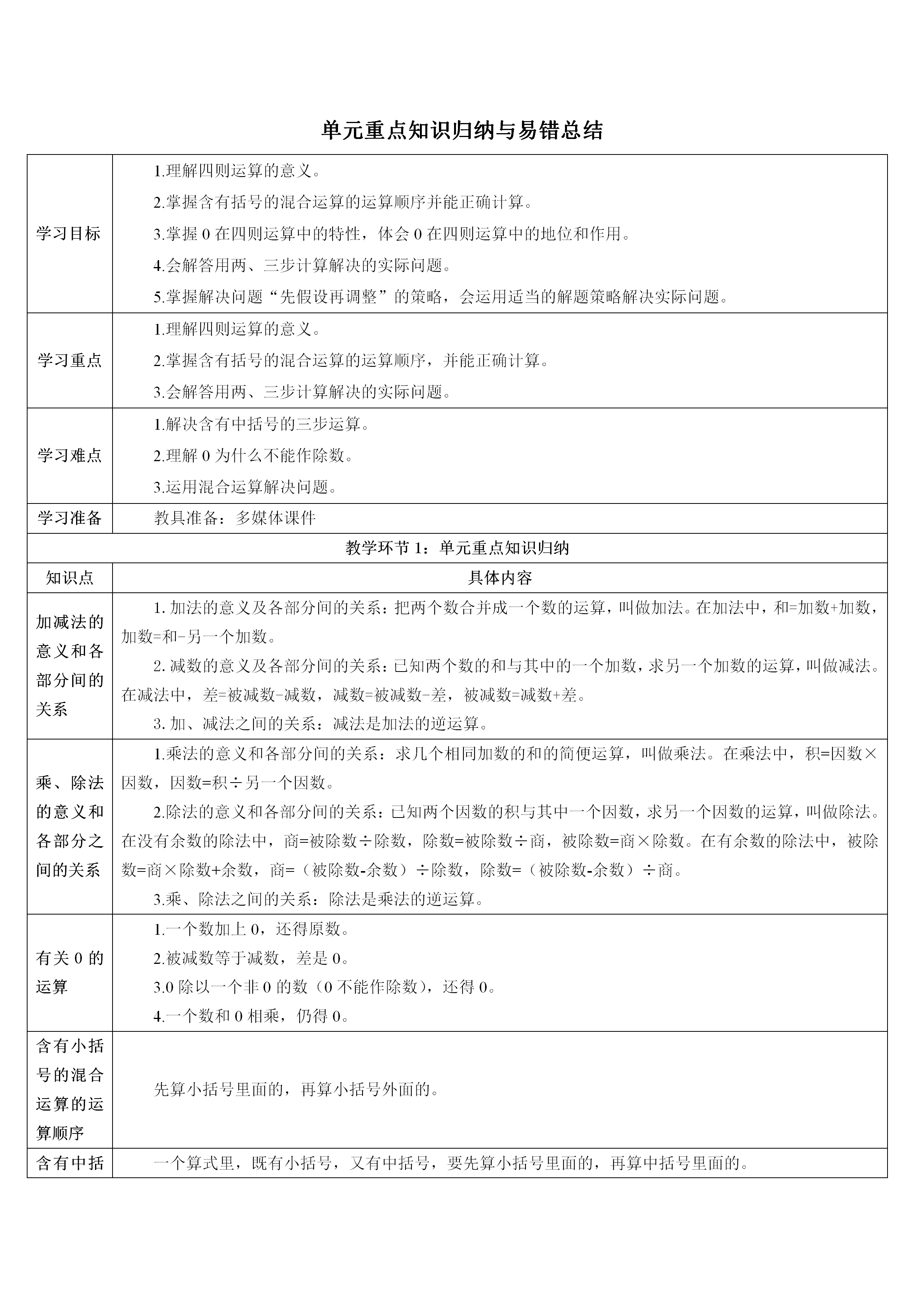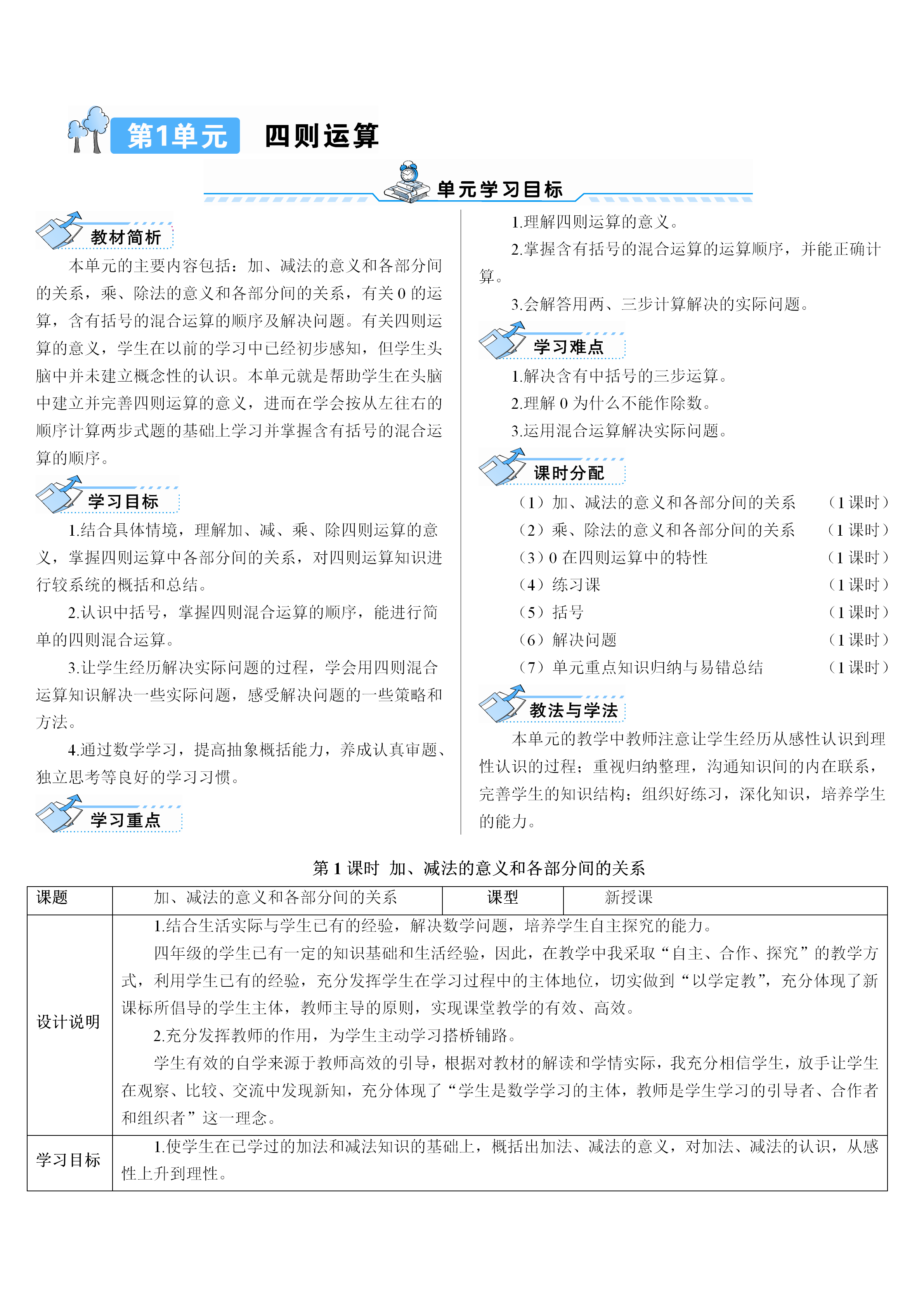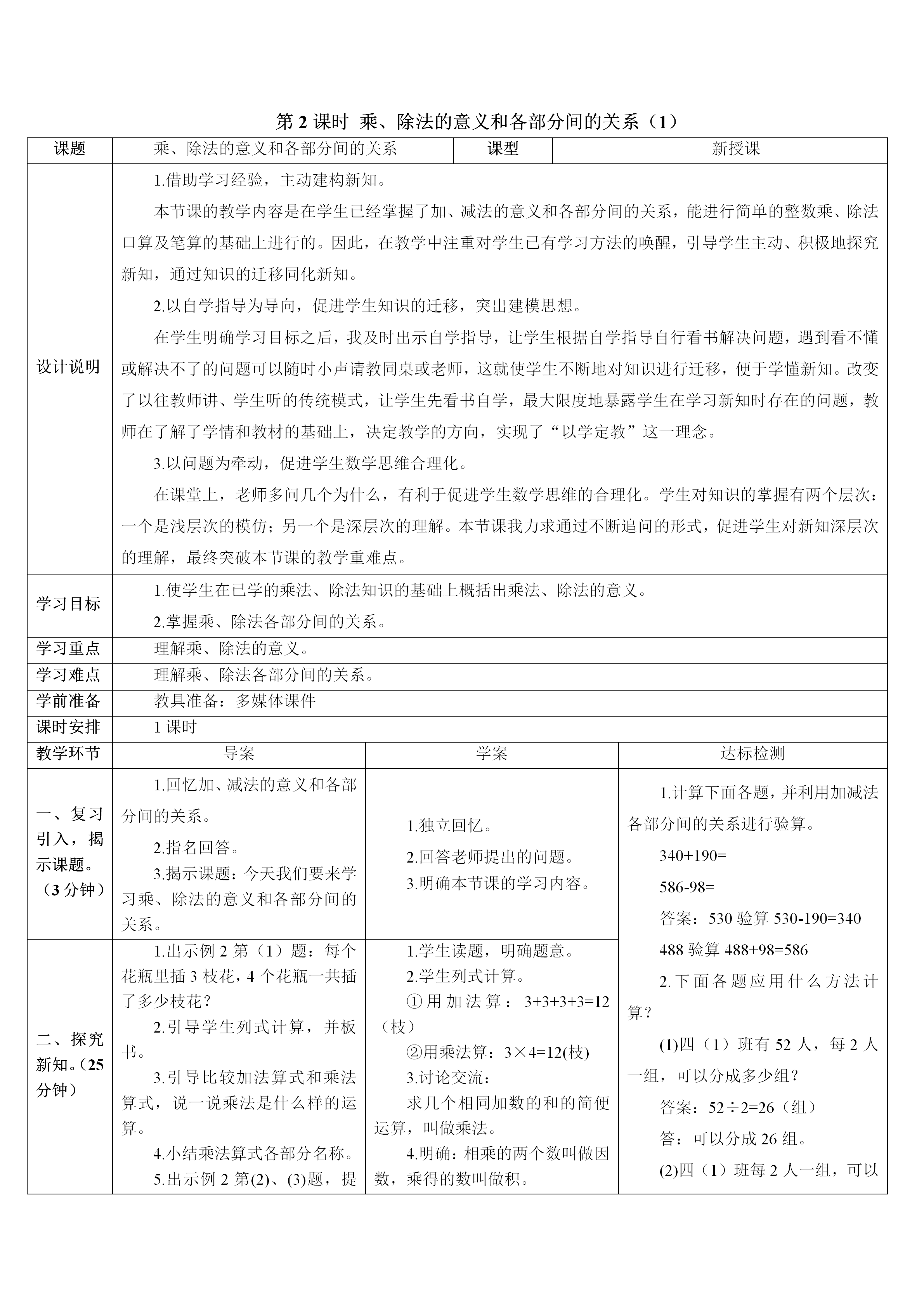 2026春人教版数学四年级下册导学案word版 纯净版 可编辑修改 可直接下载使用
